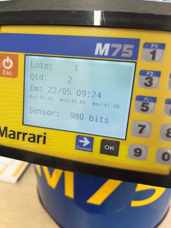 - Leitura dos valores: O medidor fornecerá instantaneamente os valores do teor de umidade e do PCU.