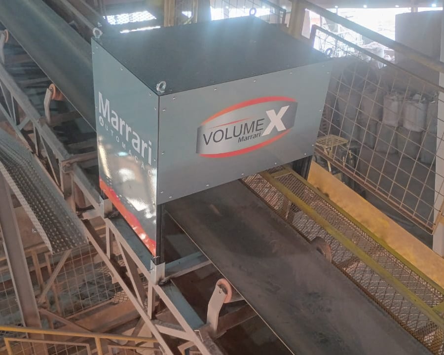O medidor de volume de materiais sólidos para esteiras e correias transportadoras, Volume X, é um scanner laser que verifica o perfil da carga em esteiras e correias transportadoras com a finalidade de medir o volume e vazão mássica do material sólido em movimento, com a possibilidade de integração de uma balança integradora no sistema.